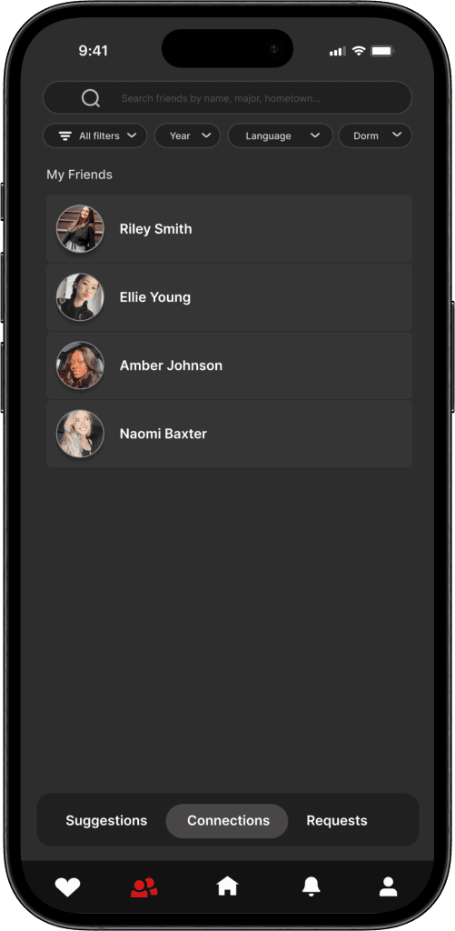 Helping students easily discover and connect with other students who share similar interests, majors, or dorms