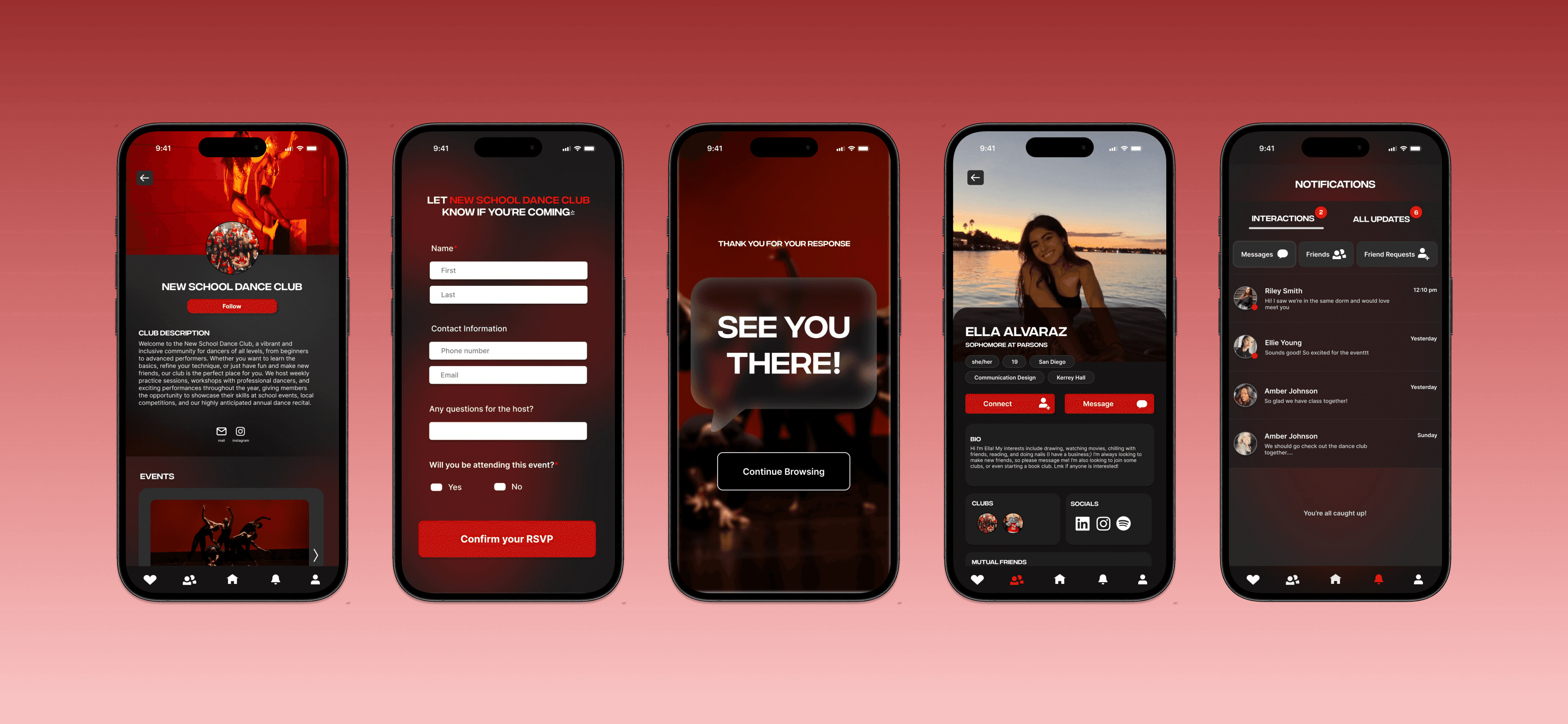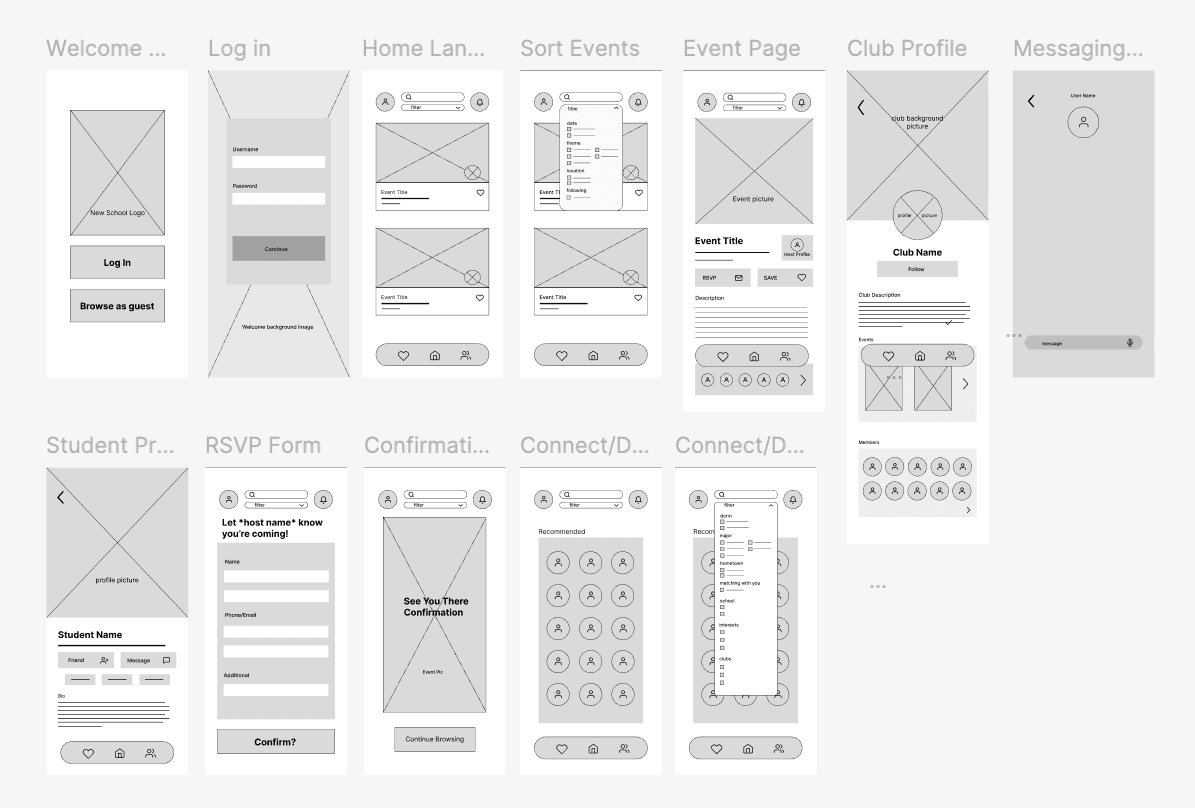 At the New School, student engagement in activities, clubs, and events is low due to ineffective communication. Information is scattered across multiple platforms, with static user experiences making it difficult for students to quickly and easily discover relevant information. As a result, students often find out about events after they have already occurred, missing valuable opportunities to meet other students, overall leading to a disconnected community.
